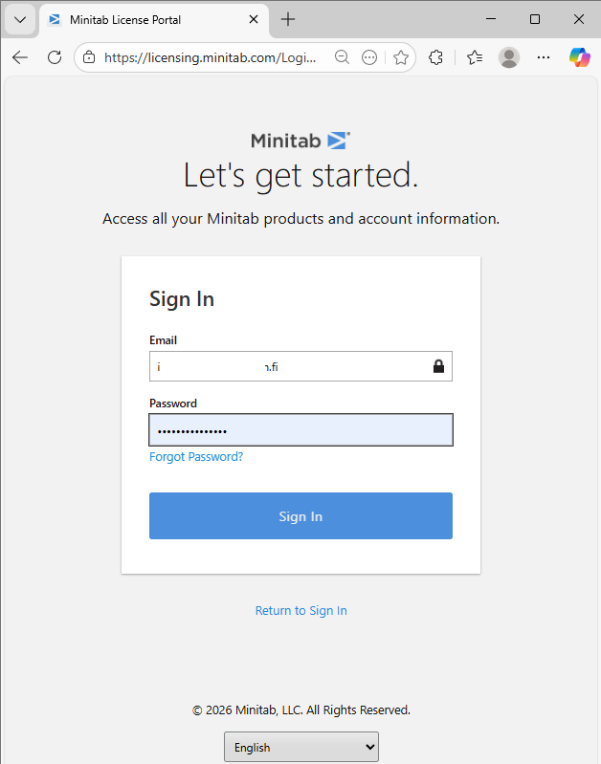 - Avaa selain ja mene osoitteeseen https://licensing.minitab.com/
